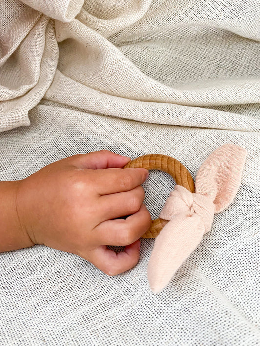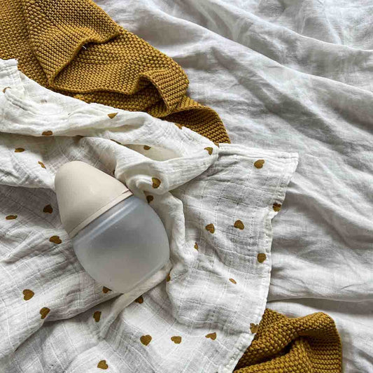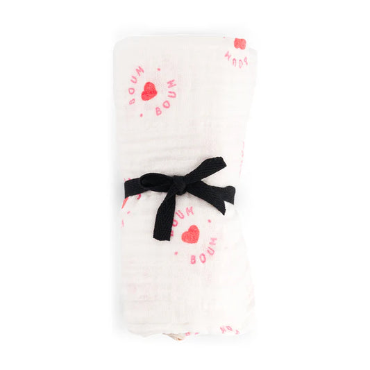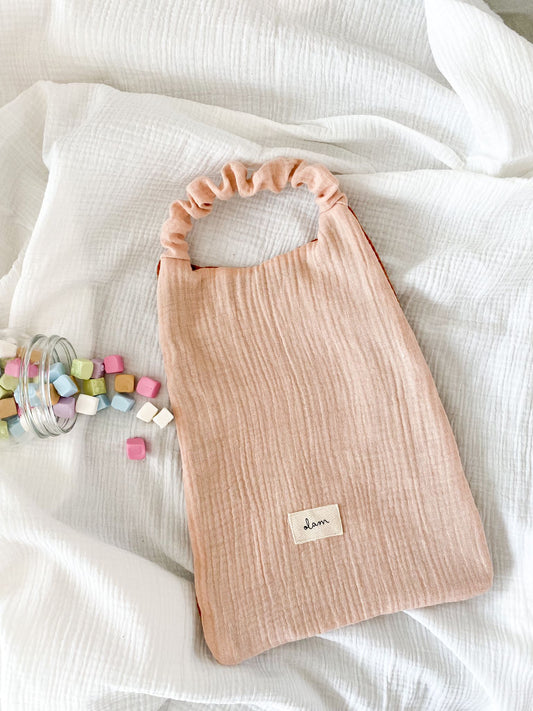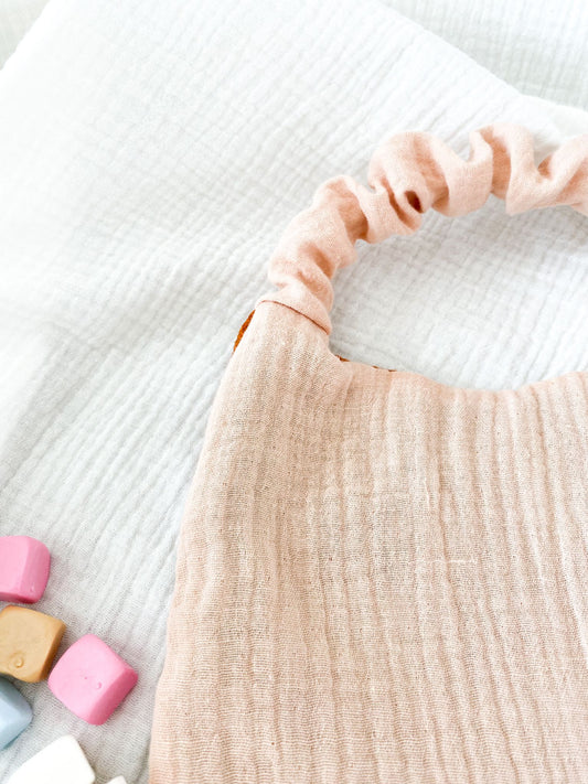 Grand bavoir élastique Nude pêche , en gaze de coton bio