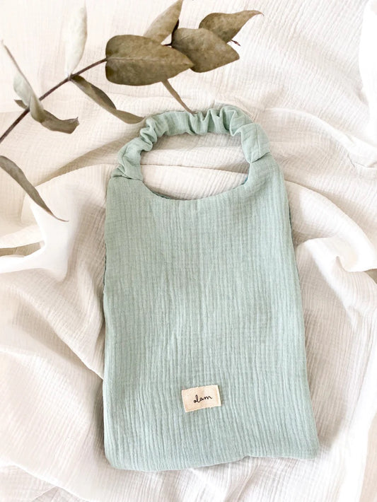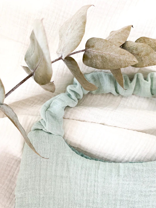 Grand bavoir élastique Vert Opaline, en gaze de coton bio