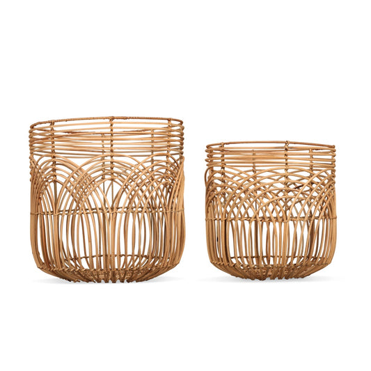 Lot de 2 paniers ajourés en rotin