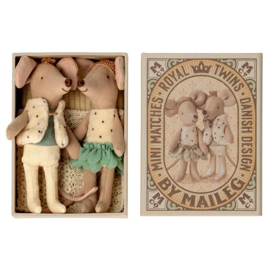 Souris jumelles royales, petite sœur et frère dans la boîte