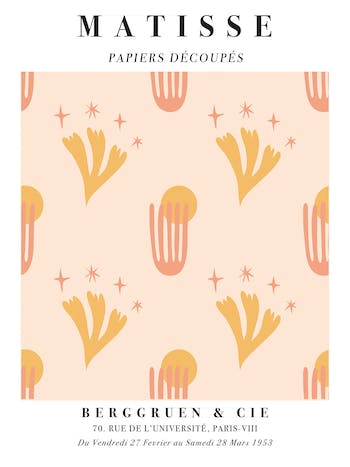 Illustration graphique d'un motif jaune et rose. L'œuvre est inspirée de l'artiste français Henri Matisse, dont l'art se caractérise par l'utilisation de couleurs et de formes vibrantes.